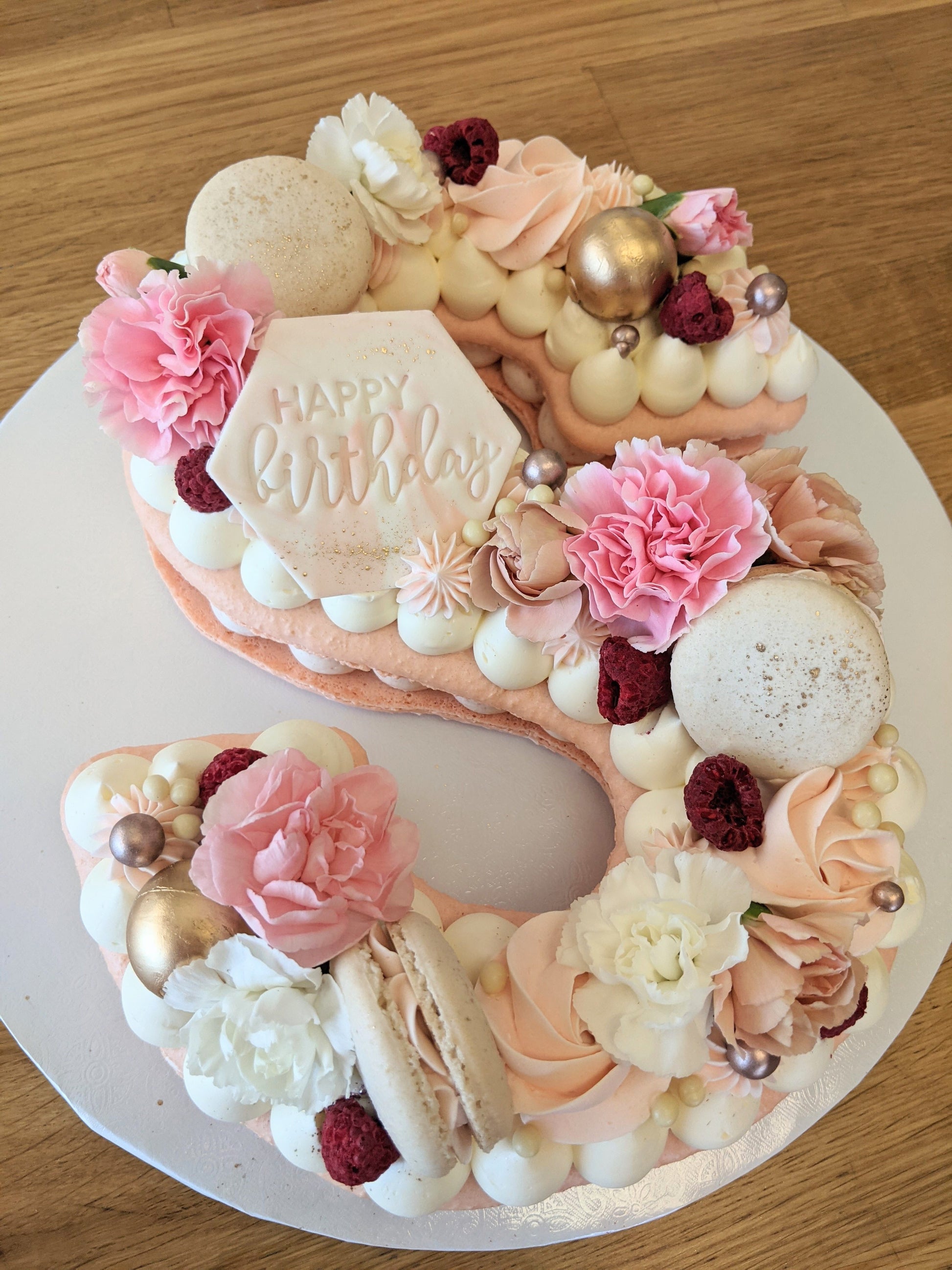 Letter or Number Macaron Tarts, the perfect statement piece for any celebration. Elevate your event with this beautifully crafted treat, adding a touch of elegance to your special occasions. Impress your guests with this delectable and stunning dessert. Each tart will serve 12-18 guests.